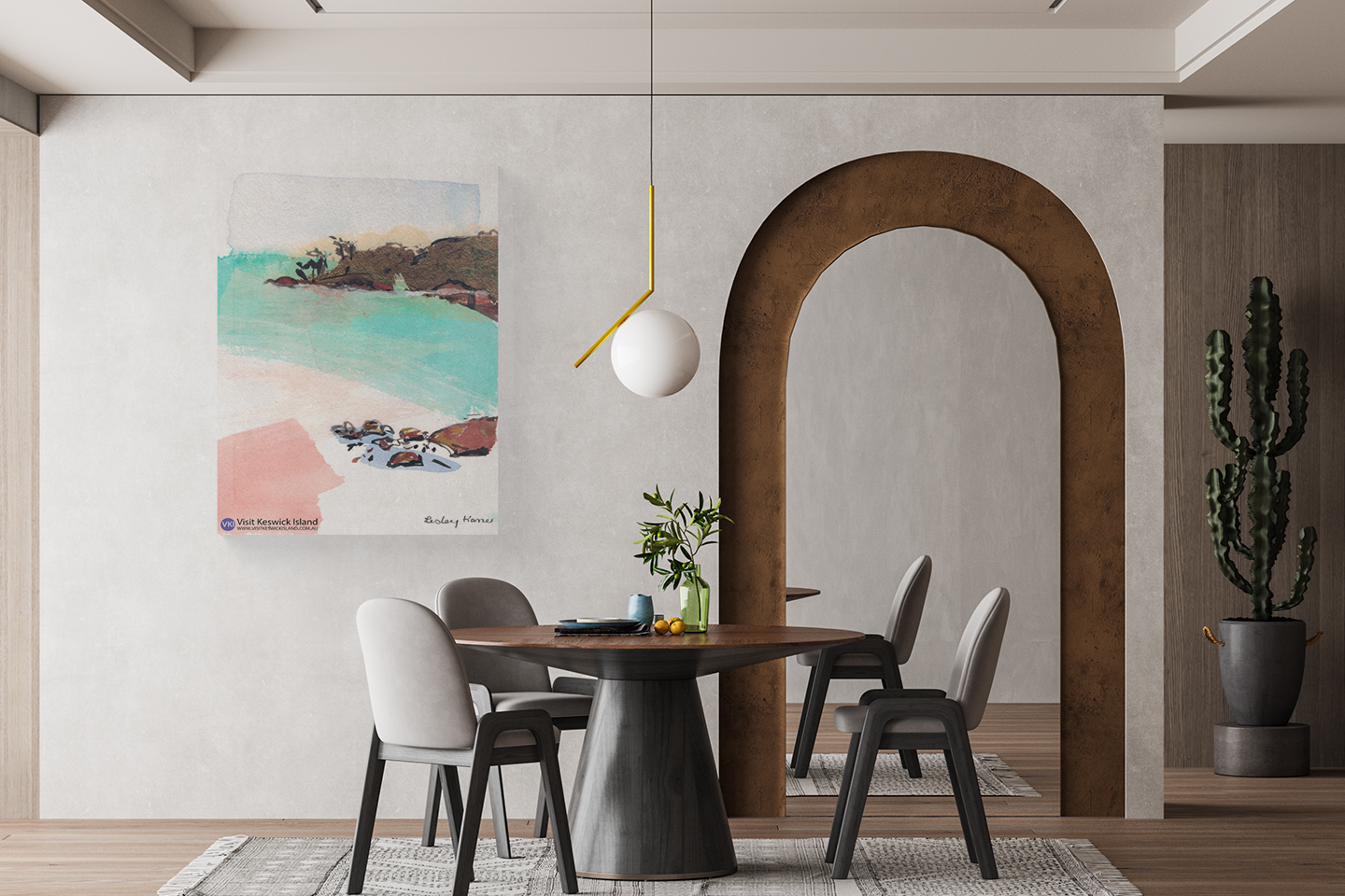 Golden Rocks in Basil Bay exclusive art by Lesley Kane Art.