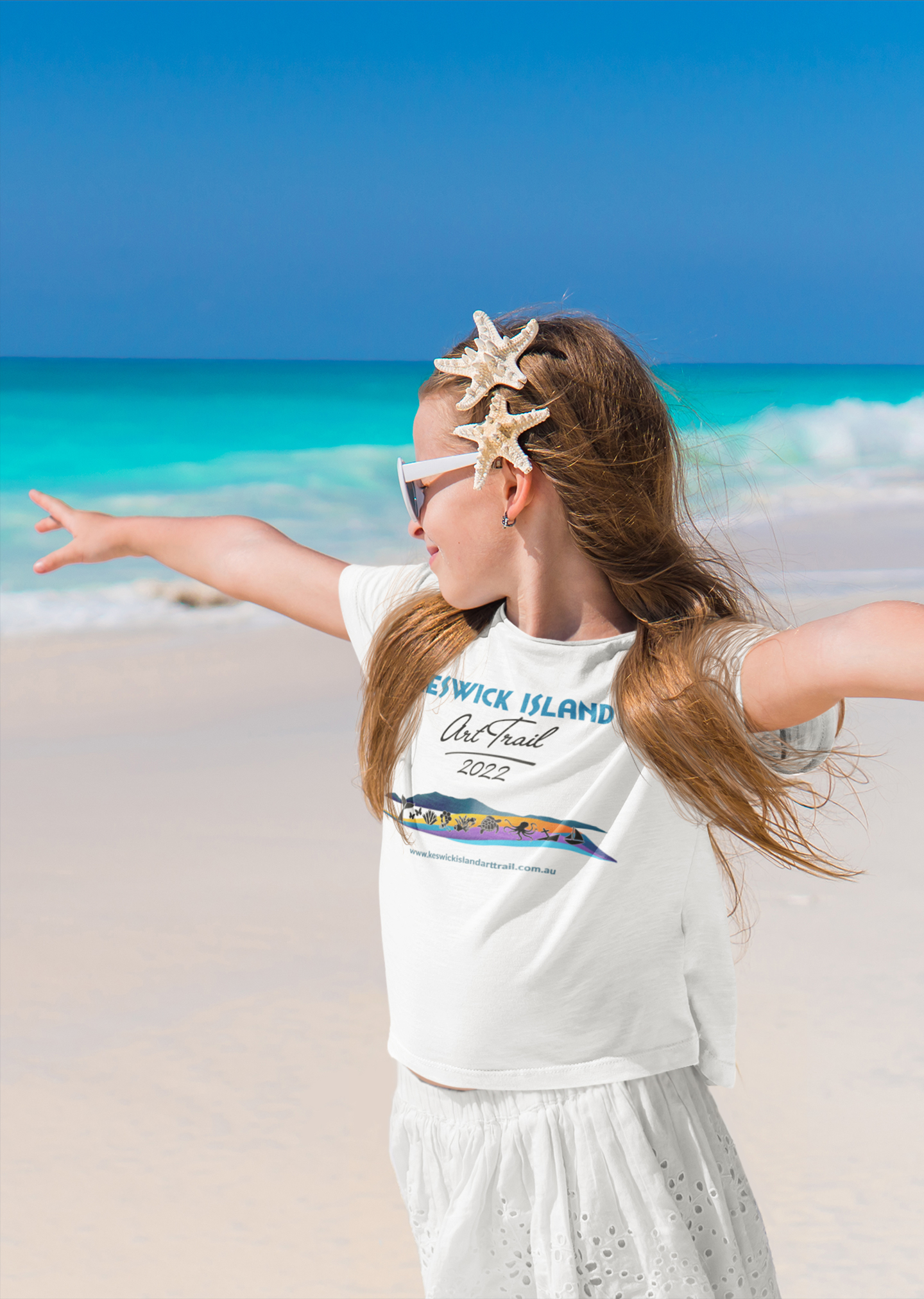 ASColour kid’s mid-weight crew neck t-shirt with the official Keswick Island Art Trail 2022 logo on the front & funders/sponsor info on the back. Available in white in sizes 2-14.