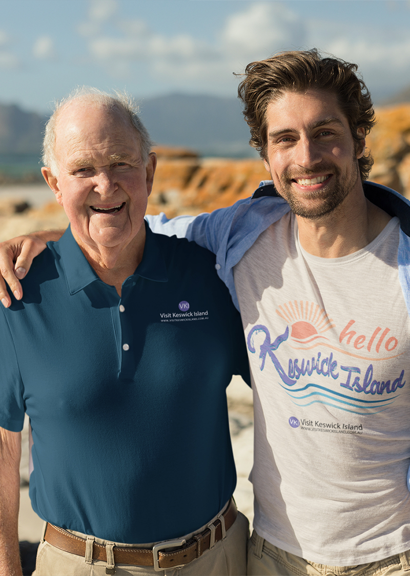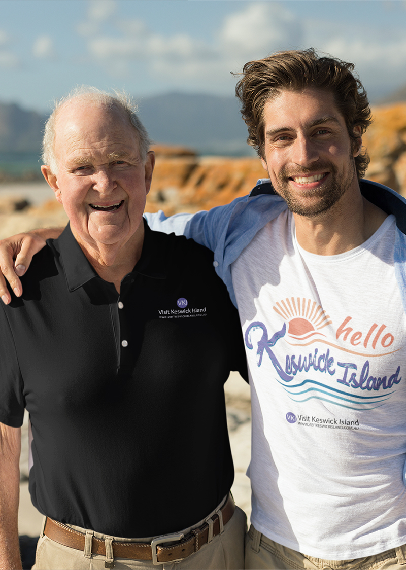 ASColour Men’s heavyweight Chad polo with a small Visit Keswick Island logo across the chest in white text. Available in black & navy in sizes S-3XL.
