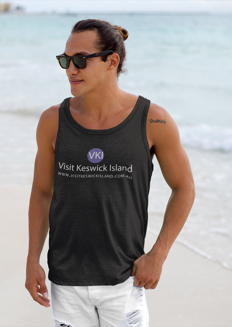 Visit Keswick Island Men’s Tank – White Text on Front