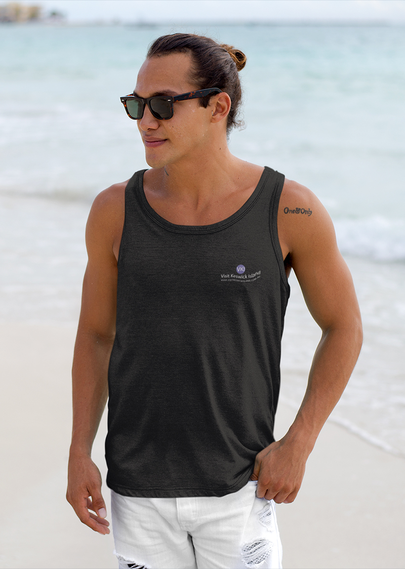 Visit Keswick Island Men’s Tank – White Text on LHS Chest