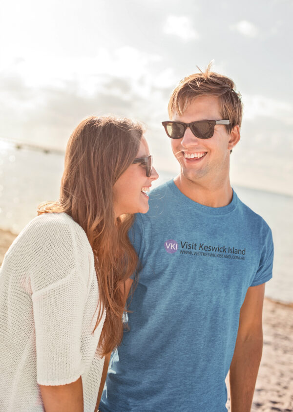 ASColour men’s mid-weight Staple crew neck t-shirt with a large Visit Keswick Island logo across the front in black text. Available in white, Carolina blue, artic blue, orange & light grey in sizes 4-5XL.